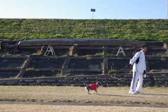 / 人,犬,眼鏡,堤防,標識,空,船,植物