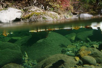 / 川,岩石,水中,河畔植生,植物,落ち葉,木