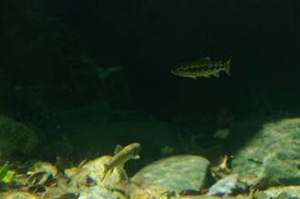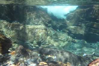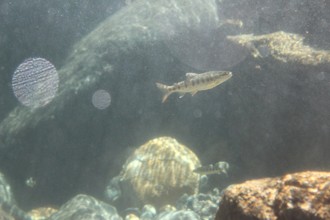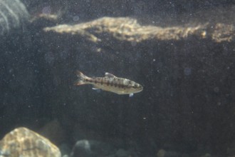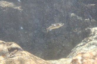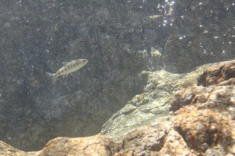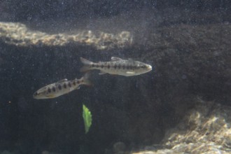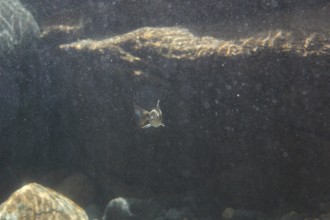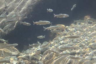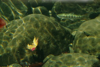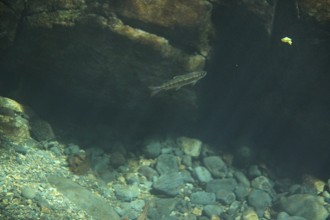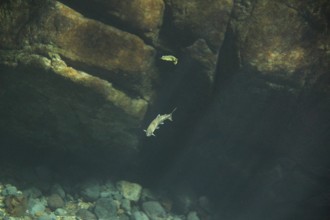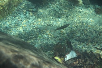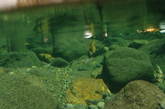 / 川,岩石,水中,魚,河畔植生,植物,紅葉,落ち葉