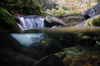 / 川,岩石,水中,河畔植生,植物,水しぶき,落ち葉
