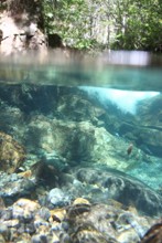 / 川,岩石,水中,河畔植生,植物,木,森林