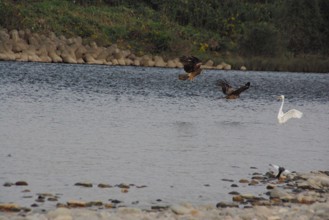 / 鳥,川,消波ブロック