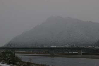 / 人,山,金華山,城,空,花,堤防,標識,木,植物,霜,川,建物,橋