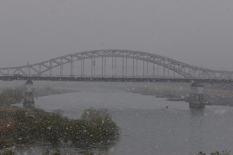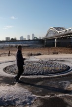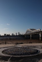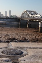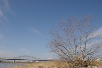 / 花,霜,橋,空,建物,植物,木,歩道橋,河畔植生,川