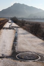 / 人,山,金華山,城,空,花,車,堤防,標識,木,植物,霜