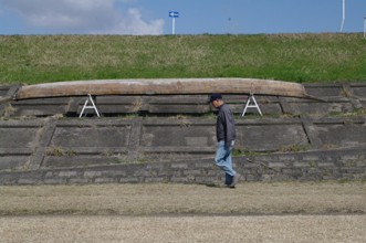 / 人,眼鏡,サングラス,手袋,堤防,標識,空,船,植物