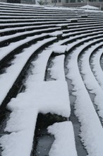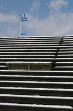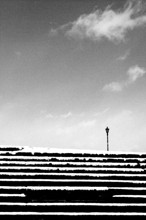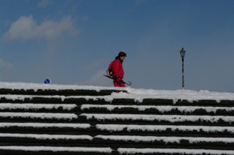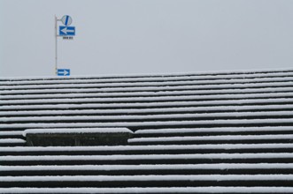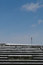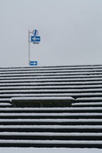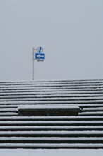 / 人,帽子,鞄,傘,道路標識,外灯,空,雲,雪