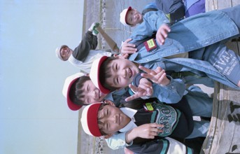 / 人,植物,帽子,ピースサイン,笑顔,子供