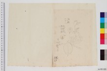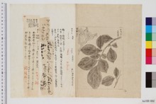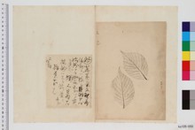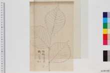 鉤/ハルニレ、京師山本永吉園中ノモノ、葉ニザラツキアリ、二月下旬花アリ、駿府 薬園ノ者葉少シセマシ、ニ四、ハルニレ