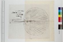 蒲葵ノ扇、支那舶来ト覚、周囲銘糸ニテ綴ル