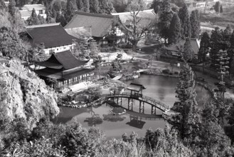 / 建物,橋,植物,池,階段,庭,車,岩石,寺
