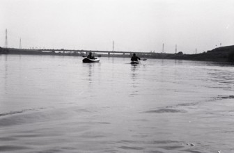 / 舟,橋,人,川,植物,鉄塔,河畔植生,カヌー