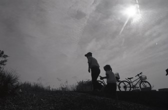 / 舟,人,子供,車,堤防,川,河畔植生