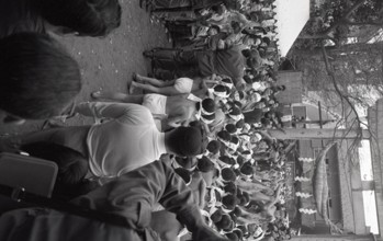 / 子供,はちまき,裸,祭り,神社,ふんどし,建物,鳥居,鞄,帽子,木,胴上げ,カメラ,裸足,人,屋台,紙垂