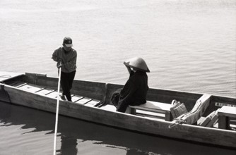 / 船,僧侶,人,水面,笠,和服,着物,帽子,川,エンジン,履物