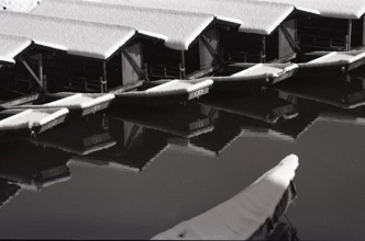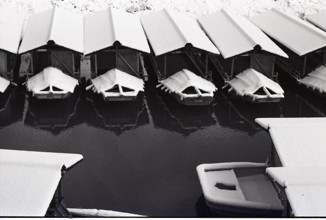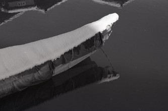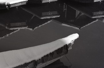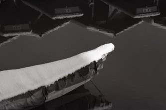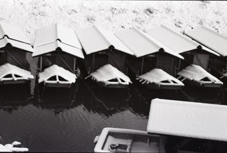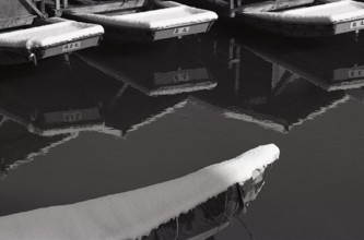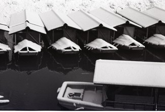 雪の舟止め場 / 船,屋形船,船着き場,雪,水,川