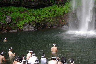 / 滝,水しぶき,川,植物,河畔植生,岩石,森林,人,祭り,はちまき,ふんどし,神事