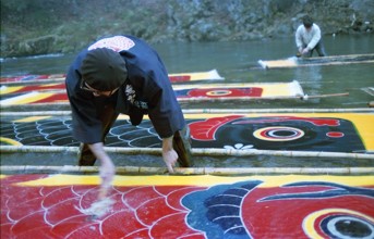 / 川,鯉のぼり,岩石,植物,人,帽子,岩,雪,法被,眼鏡,竹