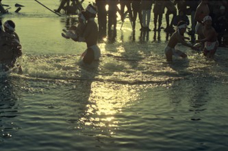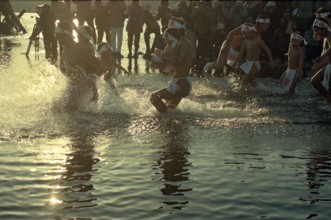 / 人,裸,子供,はちまき,カメラ,帽子,しぶき,ふんどし,川