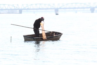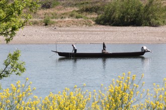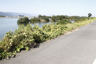 / 河畔植生,植物,木,花,川,船,人,ハンマー