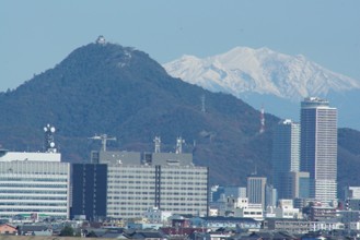 / 山,金華山,岐阜城,鉄塔,建物,電柱,電線,アンテナ,空
