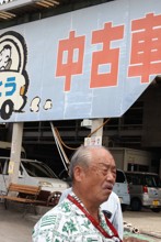 / 看板,建物,室外機,手押し車,空,雲,電線,木,植物