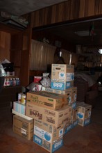 / 段ボール,非常食,アルコール,カーテン,蛍光灯,建物,ソファー,棚,トイレットペーパー,人形