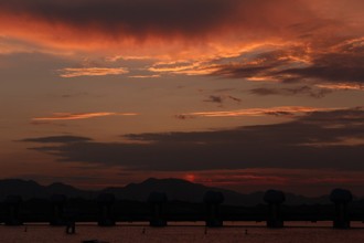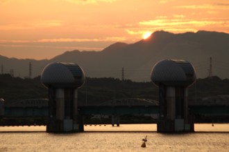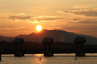/ 空,川,橋,太陽,山,鉄塔,植物