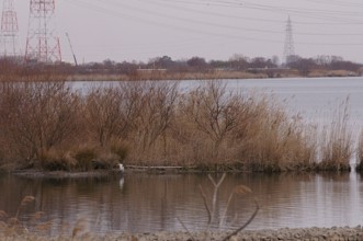 / 鳥,空,鉄塔,植物,木,岩石,建物,川
