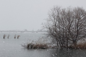 / 橋,川,植物,木,雪