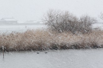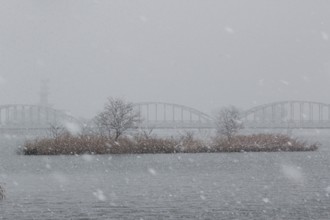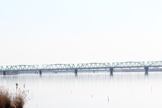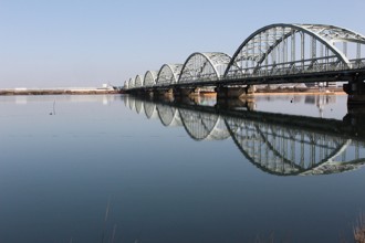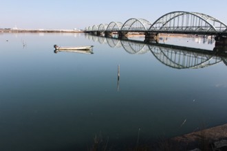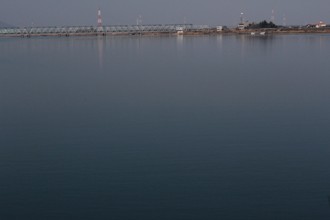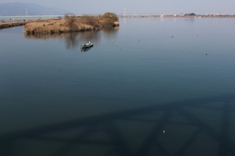 / 川,橋,空,植物,河畔植生,車,船,人