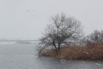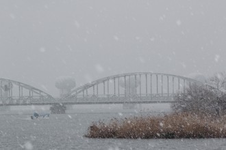 / 橋,川,船,空,建物,植物,河畔植生,看板,木