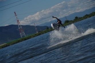 / 人,山,川,しぶき,鉄塔,植物,木,河畔植生,空