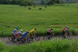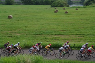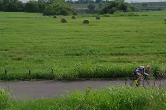 / 人,自転車,木,植物,河畔植生,ヘルメット,川,堤防