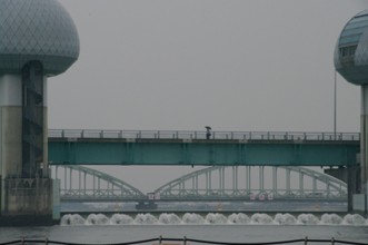 / 船,帽子,橋,人,救命胴衣,空,車,植物,河畔植生