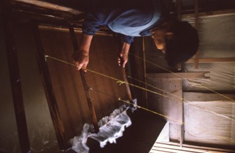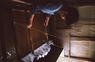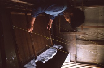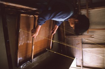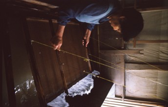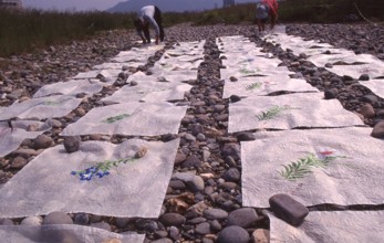 / 釣り,人,帽子,笠,石,竹竿,釣り竿,鮎釣り,網,川,岩石,河畔植生
