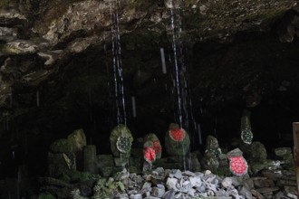 / 滝,水しぶき,川,植物,河畔植生,岩石,森林,お地蔵様,コケ