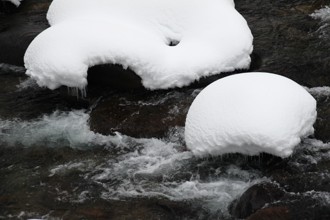 / 川,雪,岩石,しぶき
