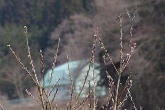 / 植物,木,ヤナギ,花,山,建物