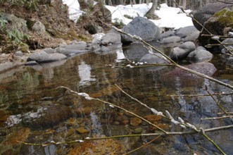 / 川,岩石,植物,木,ヤナギ,花,雪
