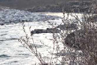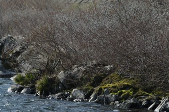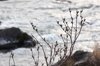 / 川,岩石,植物,河畔植生,木,ヤナギ,花,堤防