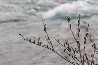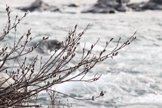 / 植物,木,ヤナギ,花,川,岩石,しぶき