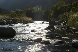/ 川,川底,岩石,植物,河畔植生,木