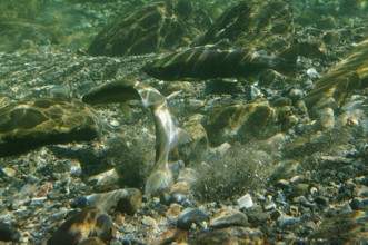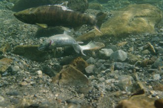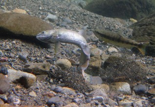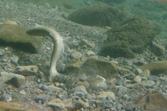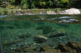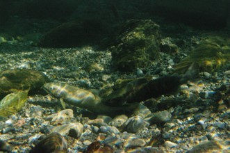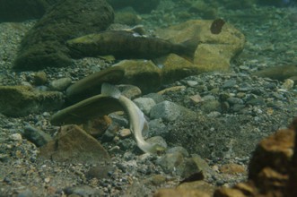 / 川,川底,岩石,魚,砂,落ち葉