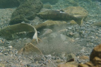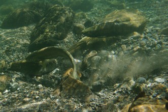 / 川,川底,岩石,魚,砂