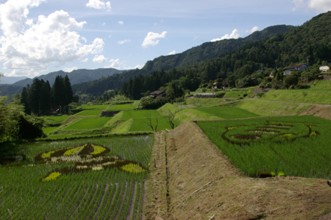 / 農業,田んぼアート,稲作,植物,棚田,竹藪,建物,岩石,魚,電柱,木,森林