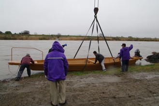 / 川,船,クレーン,人,帽子,靴,手袋,エンジン,植物,河畔植生,木,堤防,車,電柱,電線,鉄塔,空,建物