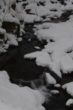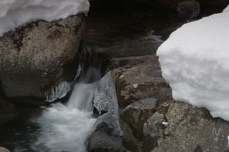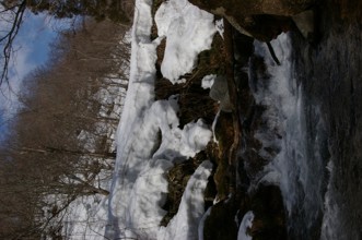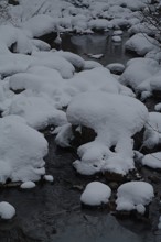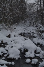 / 川,岩石,雪,水しぶき,氷,つらら,コケ,植物,河畔植生