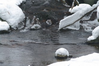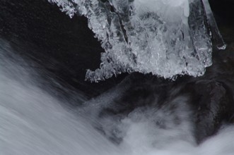 / 川,河畔植生,植物,岩石,雪,水しぶき,氷,つらら,コケ