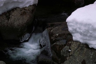 / 川,岩石,雪,水しぶき,氷,つらら